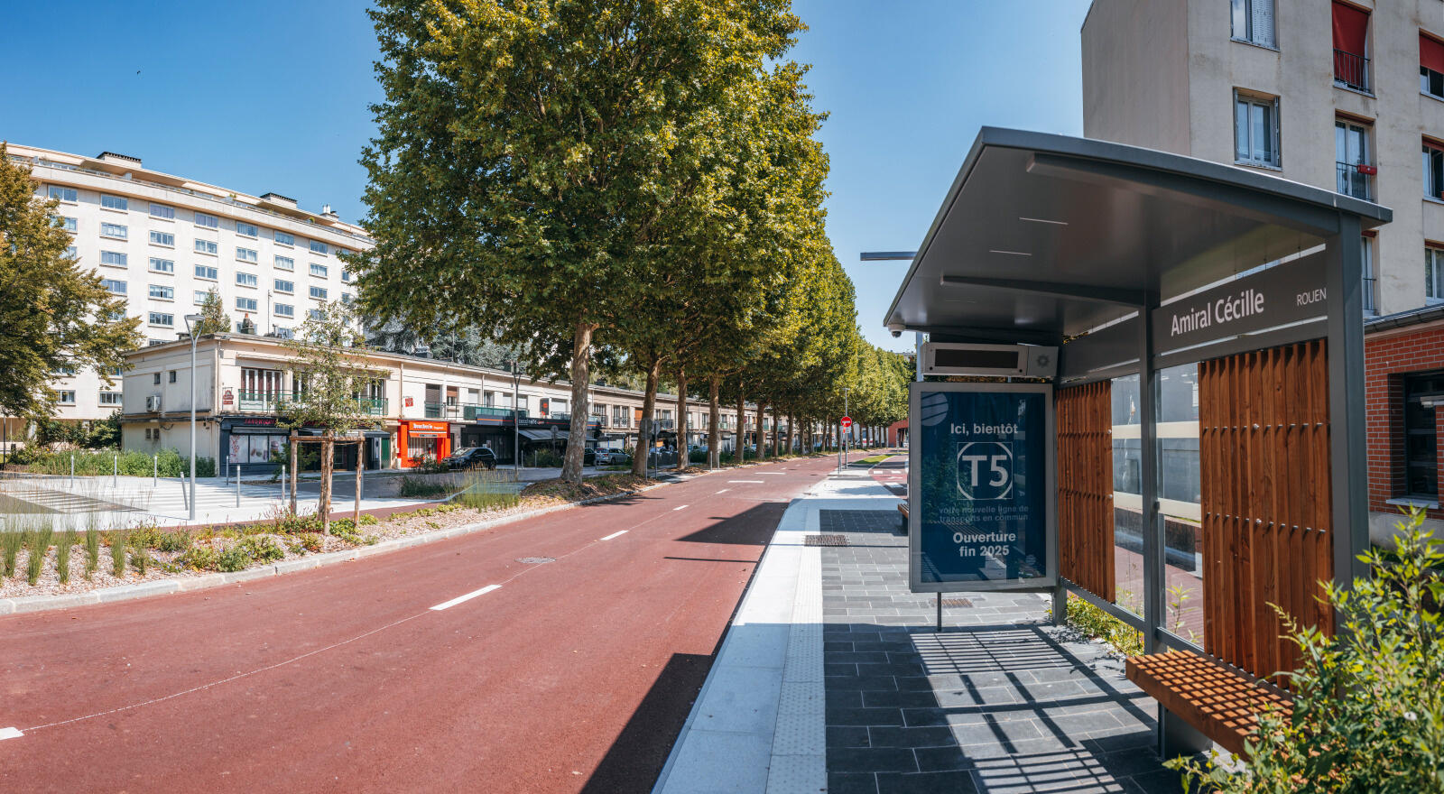 Dans le cadre de la réalisation de la future ligne T5, qui circulera entre la place Carnot et le Mont aux malades, la Métropole Rouen Normandie a réaménagé le boulevard d’Orléans à Rouen. Les travaux, qui se sont déroulés de septembre 2023 à juin 2025, ont permis au quartier de se métamorphoser. Un nouvel espace de vie apaisé avec une végétalisation renforcée.