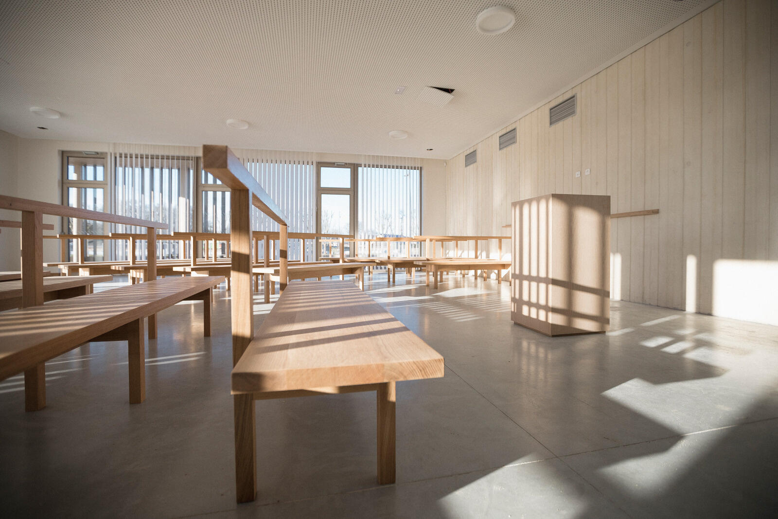 Le crématorium présente notamment des locaux publics : un hall d'accueil, 2 salles de cérémonies de capacité 150 et 40 personnes et 1 salle de convivialité d'une capacité de 75 personnes.