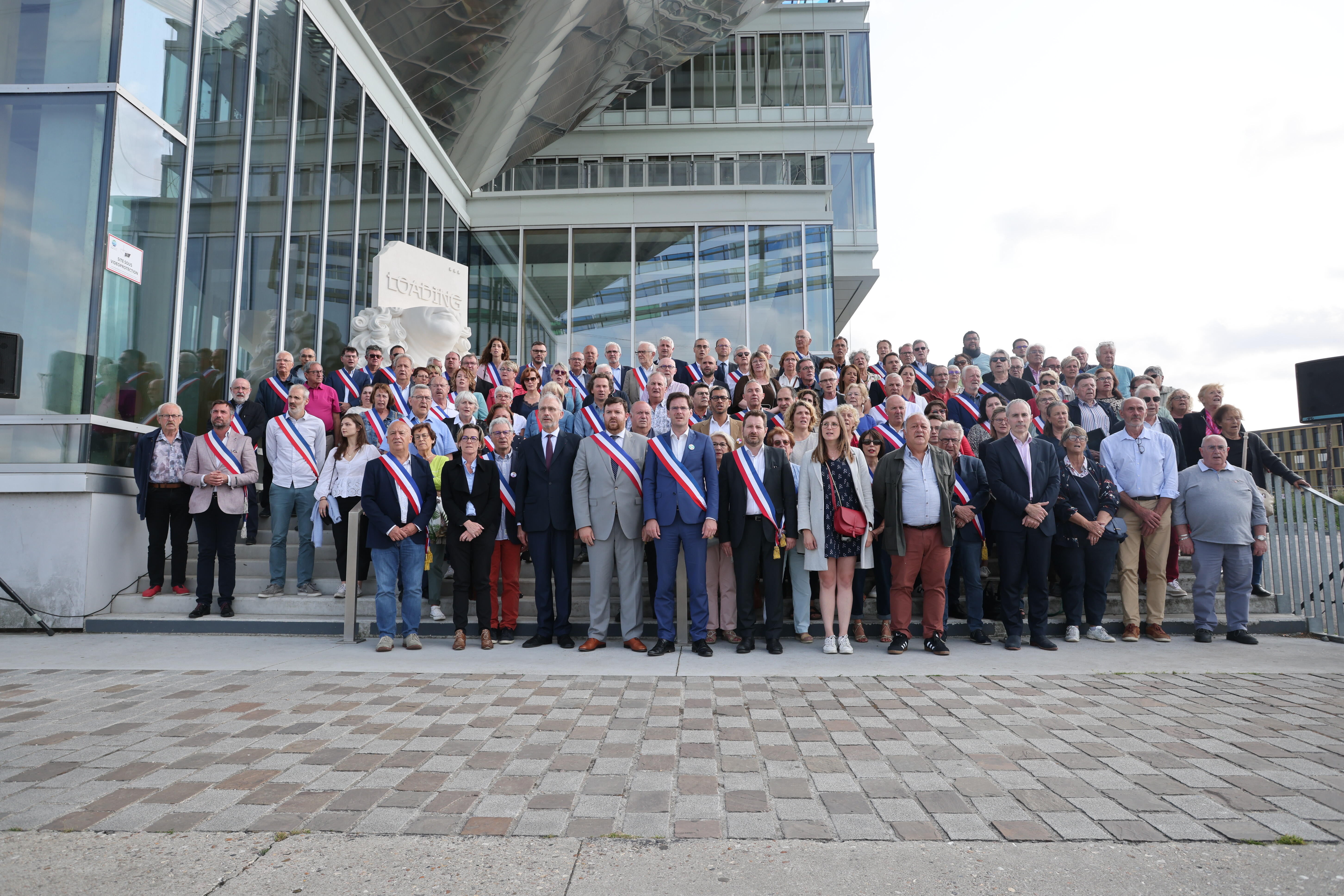 Nicolas Mayer Rossignol, Maire de Rouen, Président de la Métropole Rouen Normandie ; Mélanie Boulanger et Pascal Baron, coprésidents du groupe de la majorité métropolitaine : socialistes et citoyens rassemblés ; Marine Caron et Laurent Bonnaterre, coprésidents du groupe élus indépendants pour une métropole des territoires ; Pascal Le Cousin, président du groupe de la métropole en commun – les élus municipaux pour une métropole citoyenne sociale et écologiste ; Sylvie Nicq-Croizat et Cyrille Moreau, coprésidents du groupe des écologistes, solidaire et citoyen ; Thierry Chauvin, président du groupe construire ensemble – sans étiquette ; Julien Demazure, président du groupe métropole d’avenir, élus de la droite républicaine et du centre.