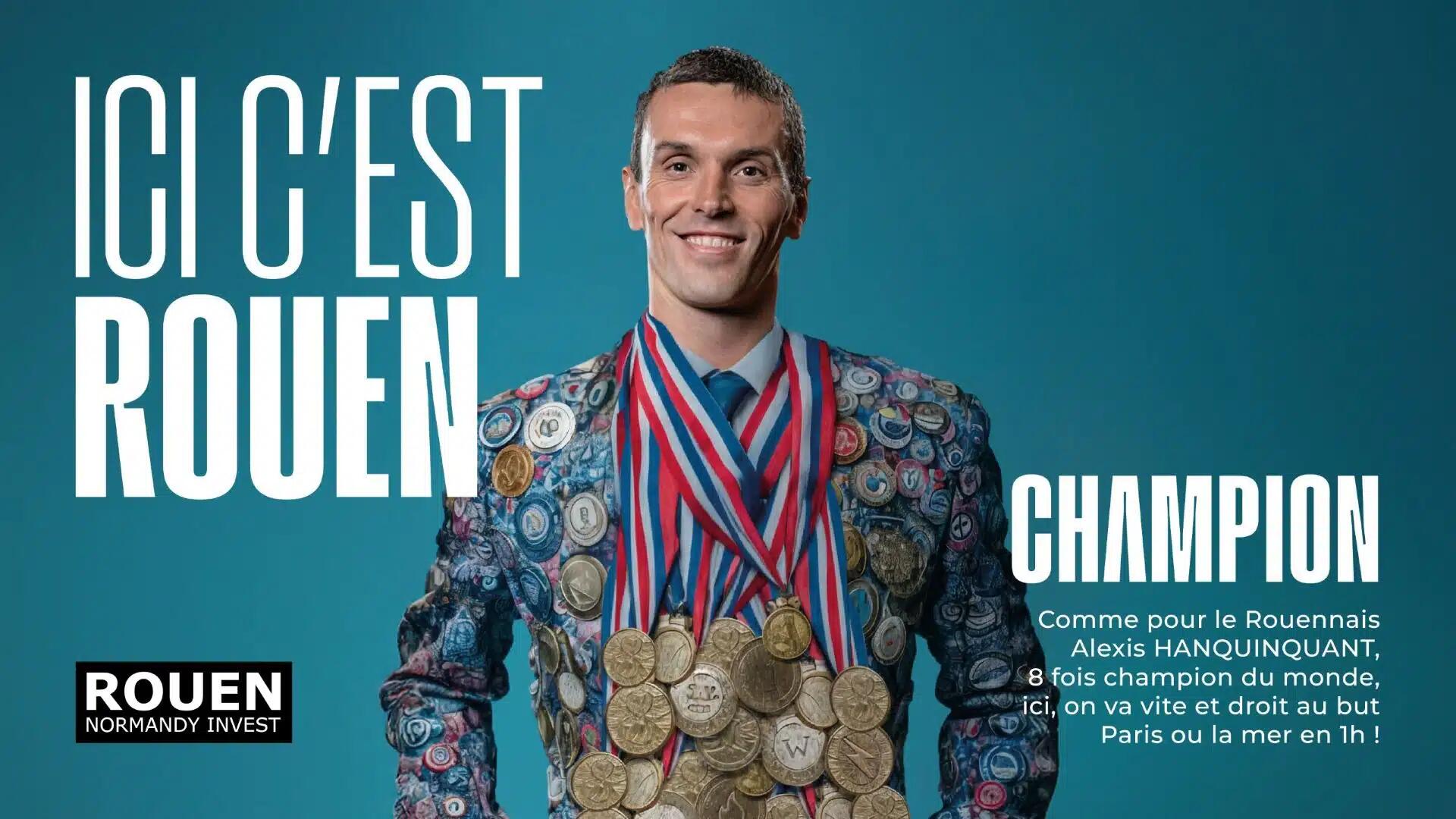 Le message est intrinsèquement lié au territoire, à son histoire, à son ton, à ses visages. C’est une campagne qui refuse le prêt-à- porter territorial et devient irremplaçable. Dans le même temps, Rouen Normandy Invest a fait le choix de s’appuyer sur des ambassadrices et ambassadeurs du territoire, nés ici ou profondément attachés à Rouen. Leur particularité : apparaître à visage découvert, dans des tenues ou des postures inattendues, parfois décalées, toujours mémorables.