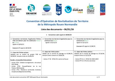 La convention cadre ORT de la Métropole a été signée le 10 février 2023. La convention territoriale d'application pour la commune de Rouen a été signée le 22 novembre 2023.