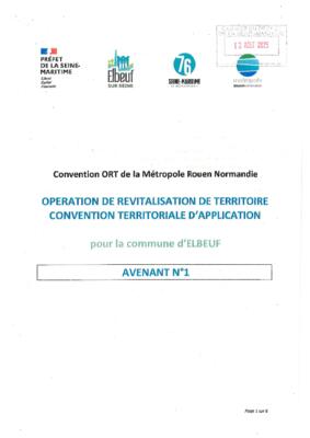 La convention cadre ORT de la Métropole a été signée le 10 février 2023. La convention territoriale d'application pour la commune d'Elbeuf a été signée le 22 novembre 2023. Cette convention a fait l'objet d'un avenant n°1 signé le 21 août 2025.