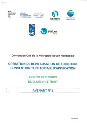 La convention cadre ORT de la Métropole a été signée le 10 février 2023. La convention territoriale d'application Petites Villes de Demain pour les communes de Duclair et Le Trait a également été signée le 10 février 2023. Cette convention a fait l'objet d'un avenant n°1 signé le 20 octobre 2025.